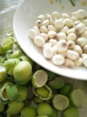 将选购回来的新鲜莲子清洗干净,去除表皮和芯。表皮较薄的莲子可以直接用手剥开,遇到表皮较厚的莲子,可以使用小刀轻轻划破表皮,然后用手剥开。去芯时,可以用牙签或细长的刀具轻轻挑出。
